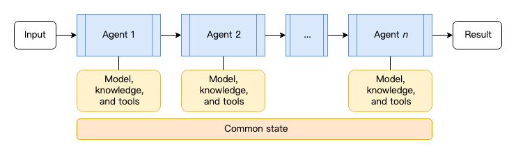每个 Agent 的输出是下一个 Agent 的输入,类似于工厂流水线。